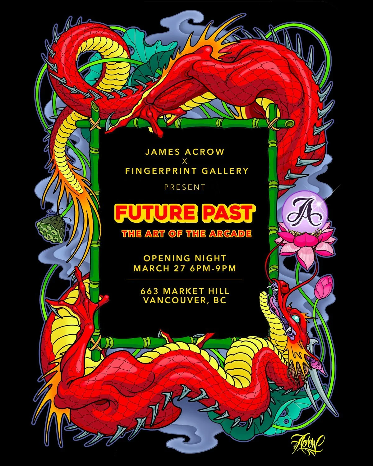 Fingerprint Gallery is thrilled to present “Future Past - The Art of the Arcade” by James Acrow. The opening reception will be on Friday, March 27, from 6pm-9pm.